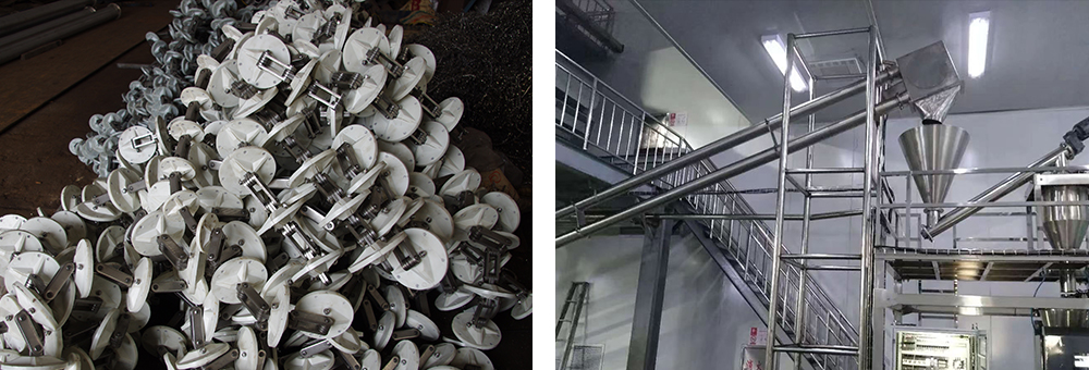 TC型管链式粉体输送机是输送粉状、小颗粒状及小块状等散状物料的连续输送设备,有水平、倾斜和垂直组合及Z字型等多种形式。在密闭管道内,粉体物料直线移动,直角转弯或Z型输送,通过不同形式组合,也可在三维空间方向输送。
